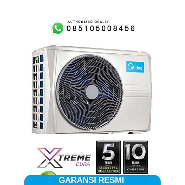 Garansi 10 tahun kompresor serta garansi 5 tahun untuk layanan servis dan suku cadang sparepart tanpa biaya tambahan, memberikan perlindungan jangka panjang bagi pengguna AC Midea.